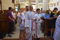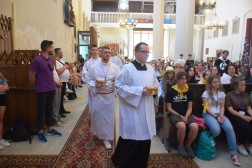 Następnie w długim pochodzie uczestnicy spotkania przeszli do Bazyliki kolegiackiej Narodzenia Najświętszej Marii Panny, gdzie odmówiono Koronkę do Bożego Miłosierdzia. O historii swojego powołania opowiedział ks. Jakub Bartczak, znany z hip-hopowych teledysków o tematyce religijnej. O wstąpieniu do seminarium pierwszy raz pomyślał po śmierci swojego brata.