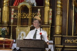 Eucharystia rozpoczęła się o godzinie 15. Uczestniczyła w niej m.in. Danuta Żbikowska, córka ostatniego adiutanta dowódcy 2. Pułku Legionów, por. Tadeusza Rojka oraz prezes i założycielka Stowarzyszenia Rodzin i Sympatyków 2. Pułku Artylerii Lekkiej Legionów. Najświętszej Ofierze przewodniczył ksiądz Dariusz Jarliński, który wygłosił również homilię. – Jako Polacy, z wielu osiągnięć naszych rodaków powinniśmy być dumni. Wiemy także, że jeszcze wiele pracy potrzeba, aby wśród nas zapanował właściwy ład i autentyczna jedność. Jezus Chrystus zachęca nas dziś, abyśmy potrafili dostrzec każdy przejaw piękna, dobra, miłości i solidarności, będących znakiem Jego działania w życiu – przypomniał kapłan i dodał, że warto brać przykład z żołnierzy 2. Pułku. – To właśnie teraz oddajemy im cześć. Modlimy się także za ich bliskich i rodziny. Żołnierzom zawsze towarzyszyły hasła: Bóg, Honor, Ojczyzna – dodał ksiądz Jarliński.