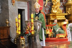 Uroczystej Mszy Świętej przewodniczył biskup kielecki Jan Piotrowski. Wraz z kapłanami, posługującymi w katedrze, koncelebrował ją superior klasztoru na Świętym Krzyżu, ojciec Marian Puchała. W swojej homilii biskup nawiązał do obchodzonej tego dnia Niedzieli Misyjnej.