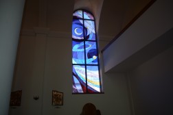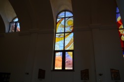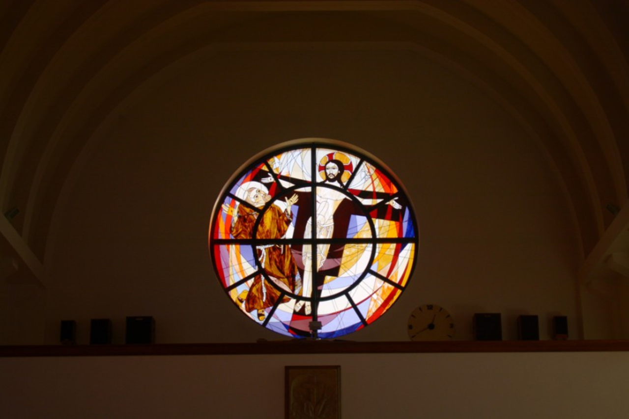 - W centrum, w rozecie jest modlitwa świętego Franciszka przy krzyżu San Damiano. Owocem tej modlitwy są pozostałe witraże, czyli pochwała stworzeń. Pokazują one w sposób symboliczny dzieło stworzenia, które święty Franciszek opisał w Pieśni Słonecznej. Na każdym jest także fragment tej modlitwy, pełnej uwielbienia i wdzięczności. Po kolei są to: słońce, ogień, księżyc i gwiazdy, ziemia i woda – mówi ojciec Marek Skwarło.