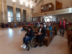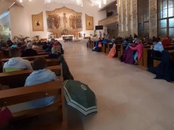 W trakcie rozważań prowadzonych przez ks. Grzegorza Stachurę, pątnicy rozważają tajemnicę Eucharystii.