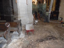 W tej chwili trwają prace związane z demontażem starej posadzki. – Na skutek różnych działań podłoża doszło do jej zniekształcenia. Stwarzało to zagrożenie dla wiernych i rodziło pewien dyskomfort – tłumaczy ksiądz proboszcz. Niezbędna okazała się wymiana fundamentu podłoża. – Po odpowiednich pracach, na nowym fundamencie zostanie założona ta sama posadzka, która poddana zostanie oczyszczeniu. Takie są zalecenia konserwatorskie. W miejscu, gdzie zniszczenia są znaczące, zostanie położona nowa – dodaje ksiądz Marian Fatyga.