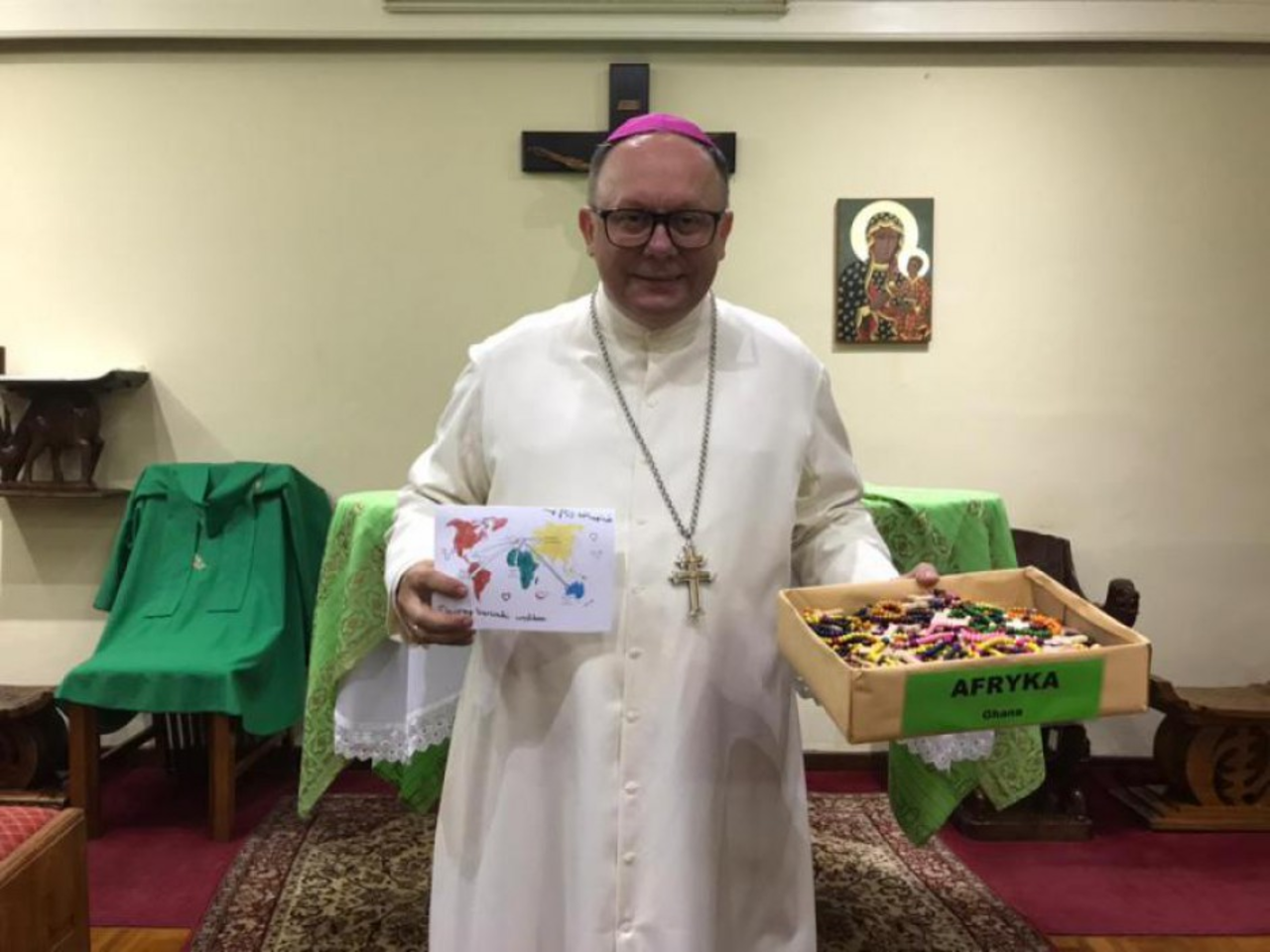 – Na zakończenie Mszy powiadomiłem zgromadzonych, że po końcowym błogosławieństwie zostaną im rozdane pamiątkowe różańce. Zaznaczyłem, że te różańce mają swoją szczególna historię, ponieważ zostały wykonane przez dzieci z Polski, ze Szkoły Podstawowej nr 2, ze stolicy diecezji, z której pochodzę, z Kielc – mówi arcybiskup Henryk Jagodziński, nuncjusz apostolski w Ghanie.