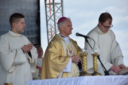 – Trzydzieści lat temu przybył do nas papież Jan Paweł II. Do nas, czyli do mieszkańców Ziemi Świętokrzyskiej. Przybył nie tylko do biskupów, księży, sióstr zakonnych, ale do całej wspólnoty osób zamieszkujących ten region. Tu, na lotnisku, było nas prawie pięćset tysięcy ludzi. Byliśmy dumni, radośni, dzieliliśmy się uśmiechem, chlebem, parasolem i płaszczem. Nikt nie czuł się obcy, a wręcz przeciwnie. Związała nas wspólnota przyjaźni i serdeczności. W deszczowej pogodzie nie żałowaliśmy sobie serca – mówił biskup Marian Florczyk.