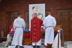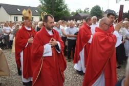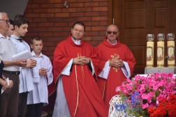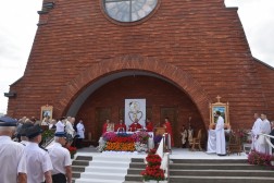 Eucharystia została odprawiona przed nowym kościołem parafialnym. Uroczystościom przewodniczył Pasterz naszej diecezji, który w swojej homilii zwrócił uwagę na trud budowy świątyni, dzisiejszą Uroczystość Świętych Piotra i Pawła oraz na wartość wiary i nadziei.