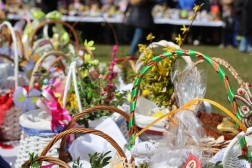 Uroczystość rozpoczęła się o godzinie 12. Wierni przynieśli koszyki z wielkanocnymi potrawami, które zostały poświęcone.