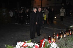 .Po mszy świętej kielczanie oraz przedstawiciele władz i związków zawodowych złożyli kwiaty pod pomnikiem patrona Solidarności na placu Najświętszej Maryi Panny.