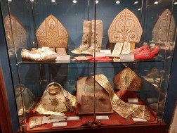Podczas zwiedzania możemy zobaczyć również szaty liturgiczne – ornaty, biskupie mitry, ale także kielichy mszalne, monstrancję, księgi i zabytkowe krucyfiksy, w tym jeden z czasów Cesarstwa Bizantyjskiego z VI wieku.