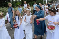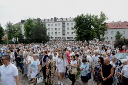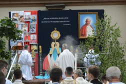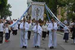 Tam biskup Jan Piotrowski wygłosił homilię, w której zauważył, że dzisiejsza uroczystość pokazuje, jak żywa jest obecność Boga wśród ludzi. – Mylił się niemiecki filozof, mówiąc o śmierci Stwórcy, który nigdy nie umiera. To jedynie ludzie umierają bez Boga. Niewolnicy ludzkiej pychy, tragarze cudzych, bezbożnych idei dalecy od prawdy, miłości i wewnętrznej wolności – mówił pasterz naszej diecezji i zwrócił uwagę na coraz częstsze przypadki ataku na wiarę we współczesnym świecie. – Jakże łatwo obraża się Boga, który objawia się nam w Jezusie Chrystusie. Jakże łatwo i bezkarnie, nie gdzieś daleko, ale już na polskiej i świętokrzyskiej ziemi, bezpardonowo obraża się ludzi wierzących, stanowiących wspólnotę Kościoła. Jesteśmy jednak dalecy od kreowania nowej epifanii zła, dlatego w naszych procesjach nie idziemy przeciw komukolwiek, ale idziemy razem z żywym Jezusem Eucharystycznym i dla Niego – tłumaczył biskup kielecki. – Eucharystia jest naszą największą świętością i nikt, i nigdzie nie ma prawa jej ośmieszać, parodiować i bezcześcić. Jej wielkości i piękna nie niweczą nawet niegodne ręce kapłana i jego niewierne serce. Jeśli się tak dzieje na polskiej ziemi, jest to znakiem upadku człowieka, a bywa, że i prowokacją chorych i bezbożnych ideologii – dodał. Biskup Jan Piotrowski zachęcił także do częstej Komunii Świętej i udziału w Eucharystii.