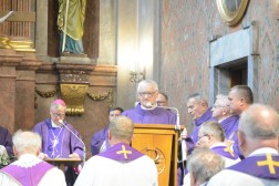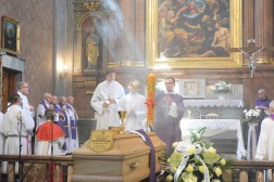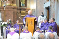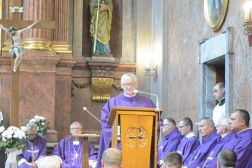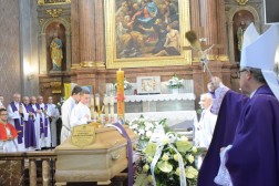 W homilii wygłoszonej przez księdza biskupa nie zabrakło wspomnień na temat zmarłego oraz refleksji dotyczących przemijania. – Zgromadziła nas tu, w kieleckim kościele św. Wojciecha, uroczystość pogrzebowa. Spodobało się bowiem Panu wszelkiego życia wezwać przed swoje oblicze robotnika z tutejszej winnicy, księdza Daniela Jarosińskiego. Chwile takie jak ta napełniają nas powagą. Stajemy bowiem wobec jednej z najbardziej podstawowych tajemnic ludzkiego życia. Stajemy wobec tajemnicy śmierci. W takiej chwili jak ta pytamy o jej sens – mówił ksiądz biskup, który zacytował również fragment testamentu śp. ks. Daniela Jarosińskiego. "Składam serdeczne dzięki wszystkim, którzy mi pomogli w drodze do celu, gdzie wszystko ma swój ład i sens, gdzie nie ma żadnych sprzeczności i złudzeń, gdzie duch nie walczy z oporem materii, gdzie nie istnieje szukanie i lęk. Jeśli kogokolwiek w jakikolwiek sposób skrzywdziłem, czy zraniłem przepraszam pokornie z całego serca i proszę o wybaczenie. Pokój Boży i Jego miłość niech będą z nami. Błogosławię wszystkich i o modlitwę proszę. Do zobaczenia w ojczyźnie dobrej i świętej, w domu naszego Ojca. Czyńcie chwałę i błogosławieństwo Pana i składajcie mu dzięki, i służcie mu z wielką pokorą" napisał ksiądz Jarosiński.