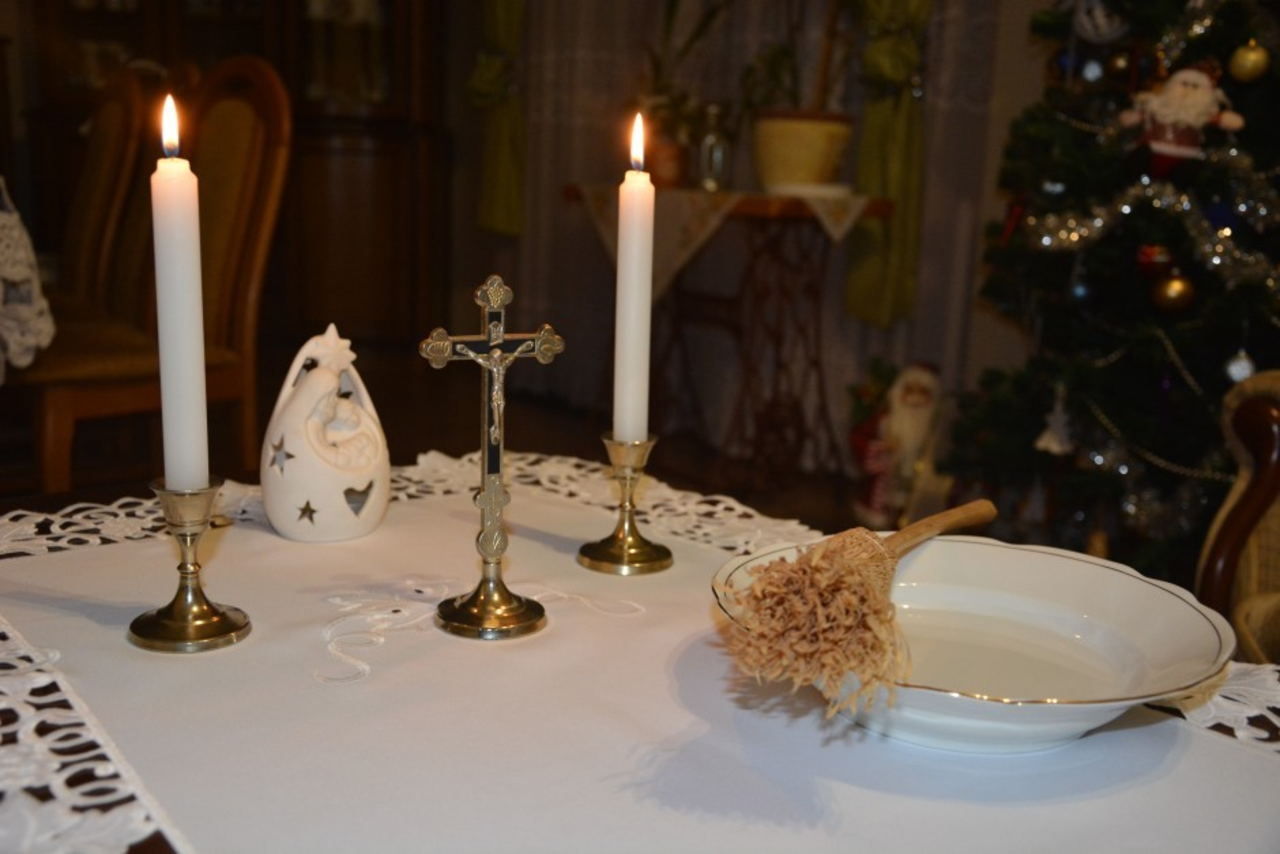 Na stole okrytym białym obrusem ustawiamy krzyż, świecę, wodę święconą i kropidło. Ważne jest też Pismo Święte.