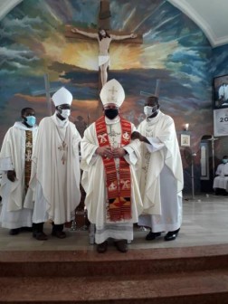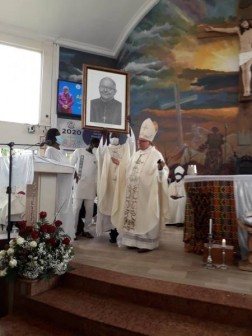 „Z przyczyn oczywistych była to bardzo uroczysta Msza św. Liturgia zaczęła się już w bramie placu kościelnego. Moje zdumienie zaczęło się, gdy wysiadłem z samochodu i nad wejściem do kościoła zobaczyłem olbrzymi baner z moim zdjęciem, informujący o dzisiejszej uroczystości. Miejscowy proboszcz przywitał mnie w tradycyjnym stroju ganejskim, który przypominał trochę rzymską togę, tyle że strój ten był bardziej kolorowy", pisze.