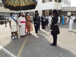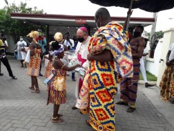 "Po pozdrowieniu podano mi wodę do obmycia rąk, a następnie wytarto dłonie i stopy. Następnie dokonałem przeglądu kompanii honorowej Rycerzy i Dam Św. Jana. Podczas przemieszczania się towarzyszył nam duet dwóch tradycyjnych tancerzy, tańczących boso, w tradycyjnych strojach przy akompaniamencie tam-tamów. Po wejściu do kościoła, w prezbiterium czekał na nas arcybiskup Akry J.E. abp John Bonaventure Kwofie. Wśród kandydatów do Pierwszej Komunii Świętej było też około dziesięciu osób dorosłych.”, dodaje.