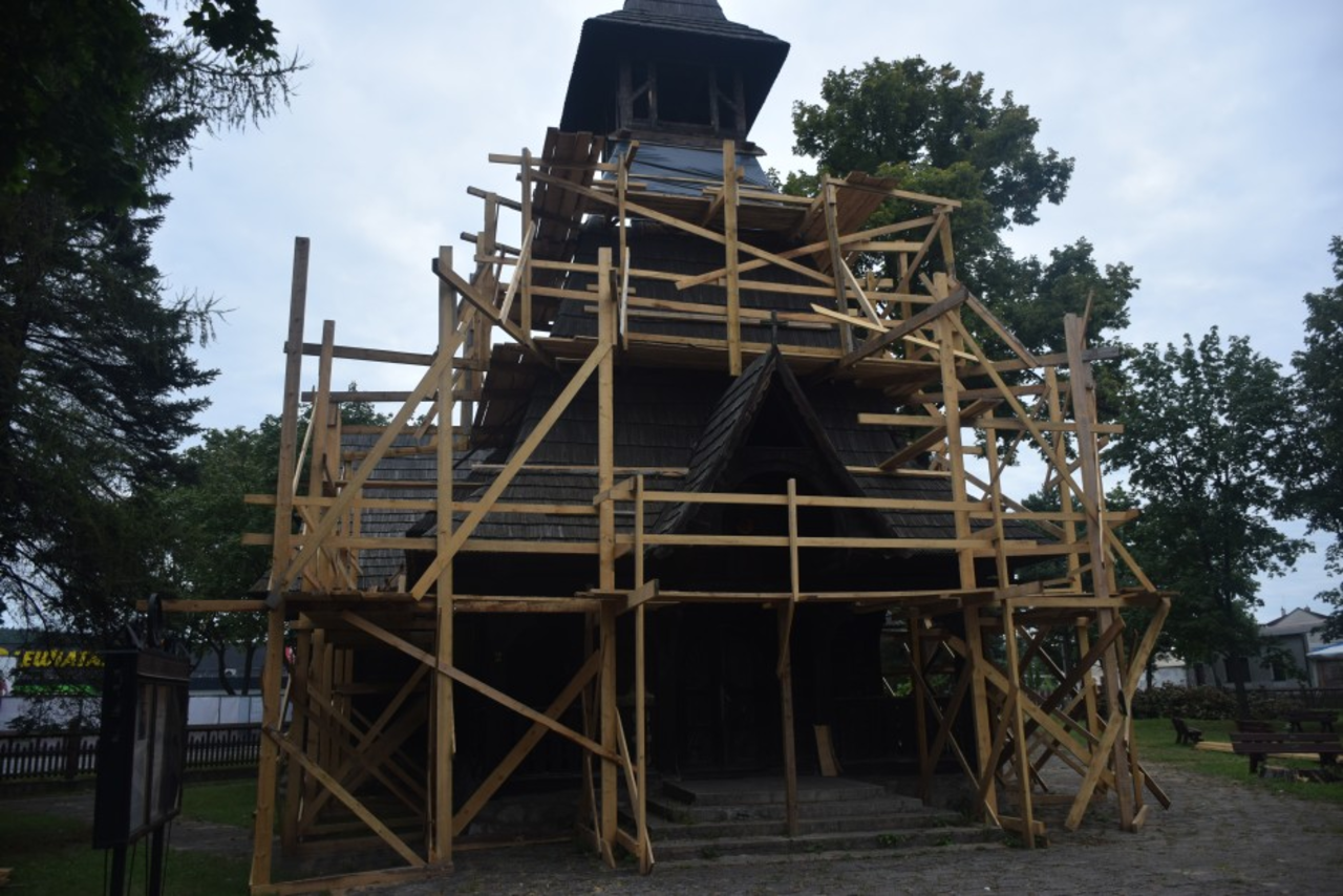 Drewniana świątynia jest w trakcie kapitalnego remontu, dzięki dotacji Ministra Kultury i Dziedzictwa Narodowego.
