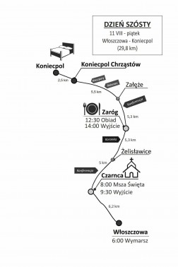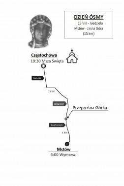 – Siódmego sierpnia wierni dotrą do Morawicy oraz Dębskiej Woli. Trzeciego dnia grupy połączą się w Morawicy i wspólnie wejdą do Kielc. Msza w kieleckiej katedrze planowana jest na godzinę 15:30. Ze stolicy województwa świętokrzyskiego pielgrzymka ruszy dzień później, o godzinie 6 rano i tego dnia dojdzie do Zajączkowa. 10 sierpnia pątnicy zatrzymają się we Włoszczowie. Ze względu na roboty drogowe zmieniła się trasa, którą szóstego dnia dojdziemy do Koniecpola. 12 sierpnia ostatni nocleg tradycyjnie odbędzie się na polu namiotowym w Mstowie. Tego dnia pielgrzymi uczestniczyć będą w nabożeństwie na Przeprośnej Górce, po którym wejdą na Jasną Górę – opowiada ksiądz Hubert Równicki, z grupy medialnej KPP.