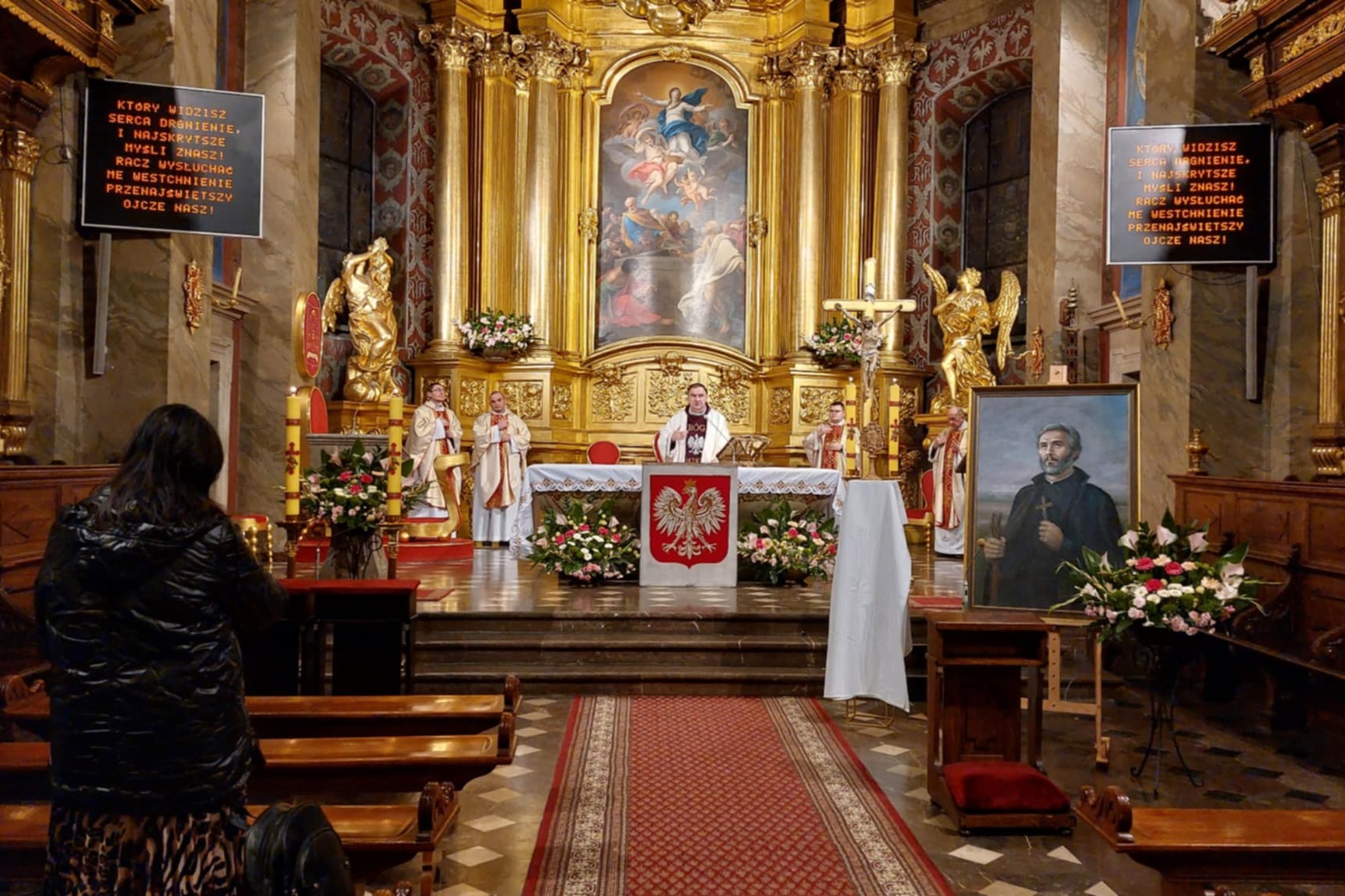 Mszy Świętej przewodniczył ks. Stefan Radziszewski, proboszcz parafii Przemienienia Pańskiego na kieleckim Białogonie, który wygłosił również homilię. W swoim słowie nawiązał do 47. rocznicy wyboru św. Jana Pawła II na Stolicę Piotrową i niezłomnej postawy biskupa Czesława Kaczmarka.