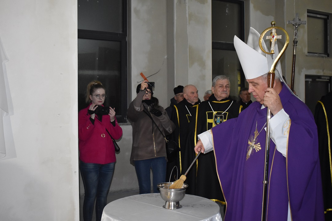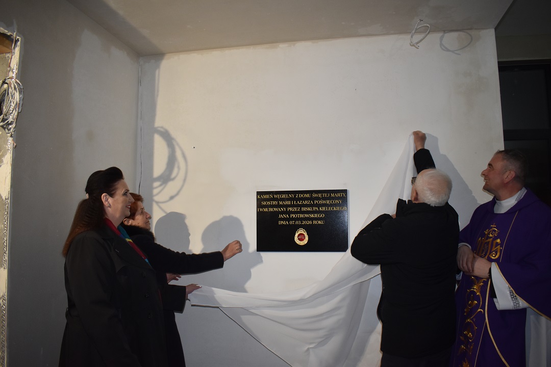Po Mszy Świętej, wierni i kapłani w uroczystej procesji przeszli do budynku nowego kościoła. Biskup Kielecki Jan Piotrowski poświęcił wmurowany kamień węgielny. Pochodzi on z Betanii w Ziemi Świętej.