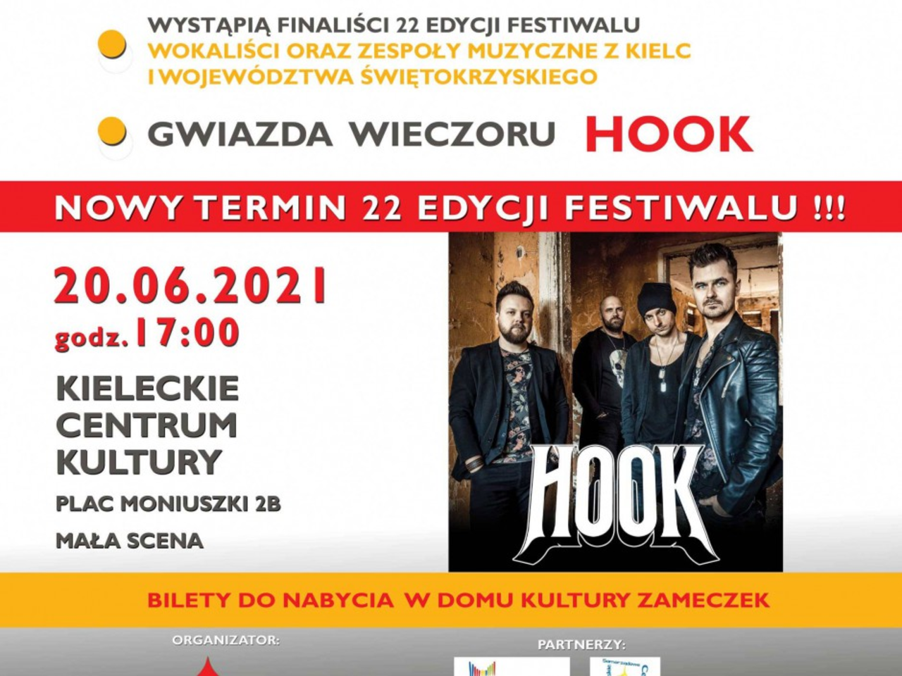 Koncert rozpocznie się o godzinie 17. Gwiazdą wieczoru będzie zespół Hook. Bilety do nabycia w Domu Kultury "Zameczek".