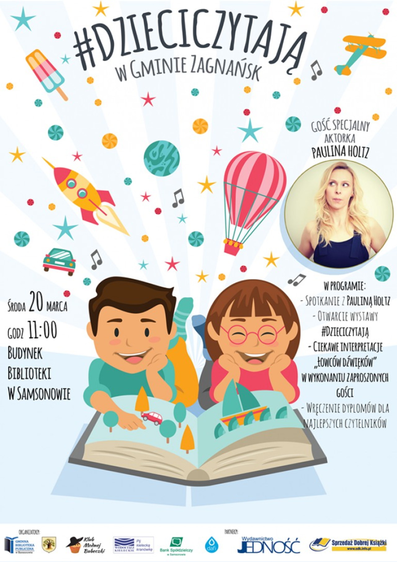 "#dzieciczytają" pod takim hasłem gmina Zagnańsk rozpocznie promocję czytelnictwa wśród dzieci do 12 roku życia. W ramach akcji odbędzie się wiele inicjatyw. Zainauguruje ją spotkanie z aktorką teatralną i filmową Pauliną Holtz, które odbędzie się w Gminnej Bibliotece Publicznej w Samsonowie.