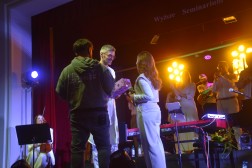 – Każdy koncert jest inny i na każdym koncercie różne emocje się uwalniają. Ten był wyjątkowy rzeczywiście, bo to koncert dyplomowy, więc ważna jest ta kwestia formalna – żeby forma utworu i treść były przekazane w jak najlepszym wydaniu. Myślę, że nam się to udało. Dzisiaj byłem przez cały dzień wyjątkowo spokojny. Ewelina Włodarska, prowadząca chór, też wspominała o tym, że bardziej oni się denerwowali niż ja. Ale po prostu ufam tym ludziom, ufam tym muzykom, więc niczego się nie bałem. Cały materiał udało się zagrać. Myślę, że na bardzo dobrą ocenę, choć o szczegóły trzeba pytać komisję. Teraz pozostały już tylko ostatnie szlify pracy magisterskiej i muszę obronić ten mój koncert – mówił tuż po zakończeniu występu duchowny.