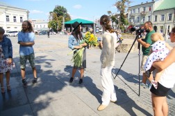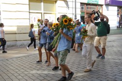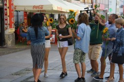 Artyści rozdawali przechodniom kwiaty. Spontaniczne spotkania z kielczanami miały wywołać nieco uśmiechu. Te sceny zostały zarejestrowane i trafią do teledysku. - To nasz pierwszy wideoklip nagrywany w Kielcach. Rozpoczynamy nim serię teledysków, w których pokażemy ciekawe miejsca w całej Polsce, fajnych, uśmiechniętych ludzi, codzienne życie, naszą ojczyznę - mówi wokalistka Małgorzata Babiarz, znana pod pseudonimem artystycznym Megitza.
