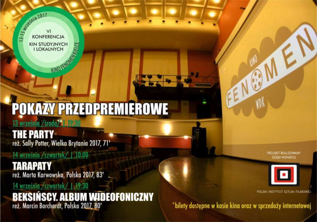 Tematem kieleckich rozmów będą kina art-houseowe, aspekty prawne związane z organizacją pokazów filmów oraz trendy w nowych mediach. Impreza odbędzie się w dniach od 13 do 15 września. Jarosław Skulski, kierownik Fenomenu mówi, że konferencja ma charakter półotwarty. - Dla mieszkańców Kielc i regionu przygotowaliśmy trzy przedpremierowe pokazy. Jako pierwszy zobaczymy film „The Party” w reżyserii Sally Potter. Ta produkcja w Polsce ma premierę dopiero w styczniu przyszłego roku. Dystrybutor zapowiada, że film powinien się spodobać tym widzom, którym do gustu przypadł zwariowany włoski komediodramat pt. „Dobrze się kłamie w miłym towarzystwie”. Na kolacji spotyka się grupa przyjaciół, zaczyna się niewinnie, a jak się kończy… kto widział ten wie – mówi Jarosław Skulski.