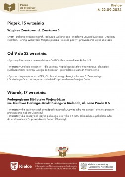 – Motywem przewodnim tegorocznej edycji są granice, które przekraczamy, ale także te, z którymi mamy problem. W twórczości naszych gości są one wyraźnie zarysowane. Będą spotkania z pisarzami, którzy w swojej twórczości poruszają tematy granic, ale nie tylko tych państwowych jak Jacek Bartosiak, ale także granic społeczeństwa i kontaktów międzyludzkich – opowiada Anna Żmudzińska, dyrektor Miejskiej Biblioteki Publicznej w Kielcach.