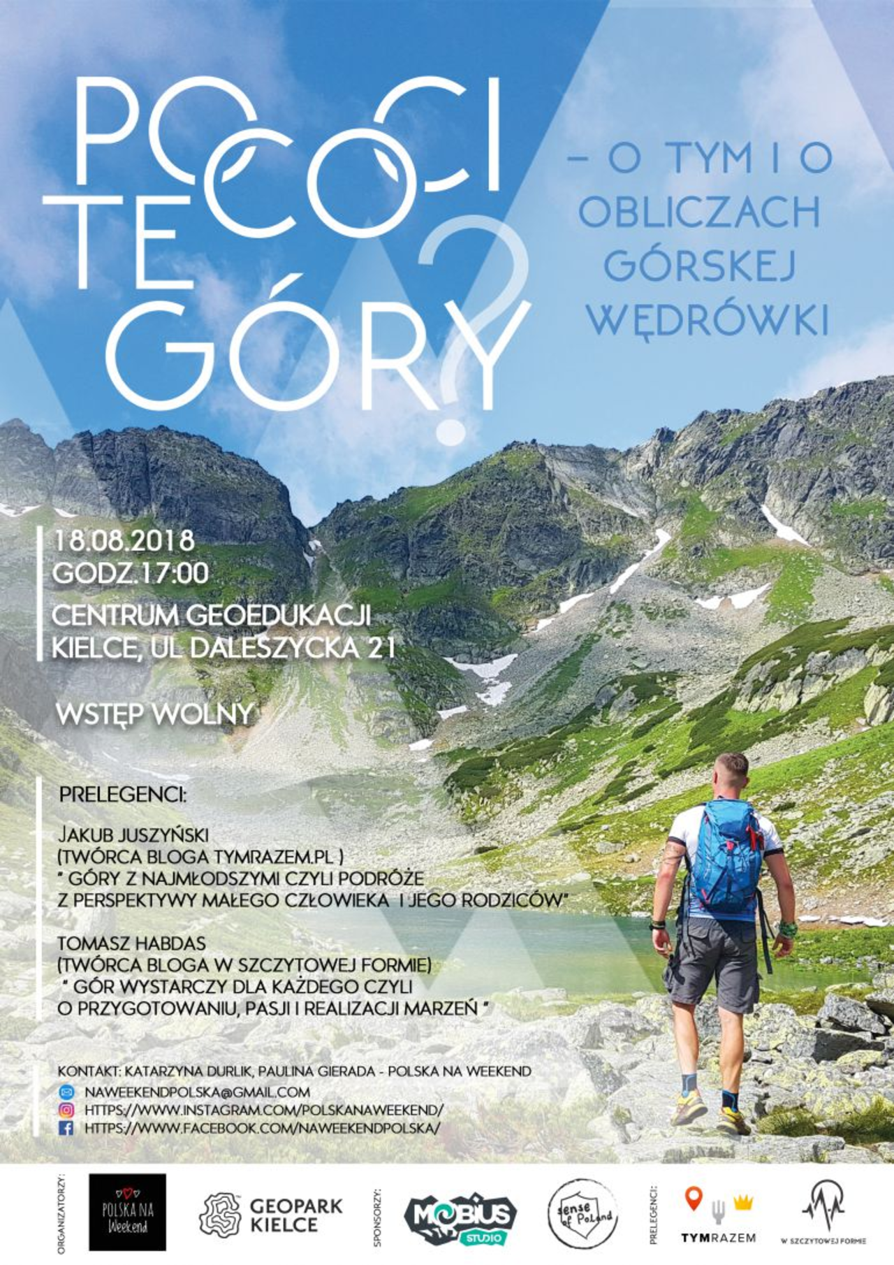 W spotkaniu pt. "I po co ci te góry?" może wziąć udział każdy, kto lubi turystykę górską, niezależnie od doświadczenia i osiągnięć. Uczestnicy będą mogli porozmawiać z Jakubem Juszyńskim, autorem bloga tymrazem.pl oraz Tomaszem Habdasem twórcą bloga ,,w szczytowej formie'', którzy podzielą się swoją wiedzą i doświadczeniem. Zainteresowani dowiedzą się jak wyglądają góry z perspektywy dziecka i jego rodziców oraz w jaki sposób przygotować i zrealizować poważną wyprawę górską.