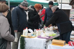 Podczas kiermaszu przy dworku Laszczyków mogliśmy kupić różnego rodzaju wędliny, kiszonki, sery, pierogi, czyli wszystko co zazwyczaj podajemy na świątecznym stole. Wśród wystawionych towarów znalazły się także miody pitne oraz susze owocowe, z których można przyrządzić wyśmienity wigilijny kompot.