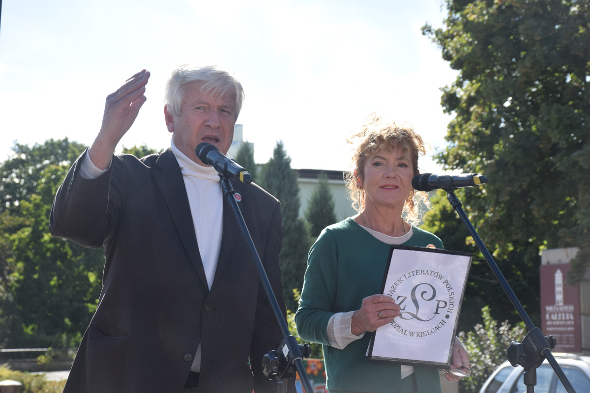 – We współczesnym świecie pełno jest mowy nienawiści, hejtu, wulgaryzmów. Słów, które mogą uprzykrzyć komuś życie, a nawet zabić. Czasy, w których przyszło nam żyć, potrzebują słów ciepłych, kojących takich, które budują, a nie niszczą godności człowieka, słów niosących nadzieję. Świat potrzebuje słów. Coraz rzadziej ze sobą rozmawiamy. Sztuczna inteligencja staje się nowym życiem, a cyfryzacja swoistą religią. Dlatego też zastanówmy się, co przekażemy następnym pokoleniom i jak będą wyglądały dzieje nasze oraz literatury – podkreśla Anna Zielińska-Brudek, prezes kieleckiego oddziału Związku Literatów Polskich.