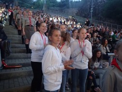 Dwudziestu solistów, pięć zespołów wokalnych i trzynaście grup tanecznych wzięło udział w koncercie "Gospodarze Gościom" zorganizowanym w ramach 45. Międzynarodowego Harcerskiego Festiwalu Kultury Młodzieży Szkolnej. Widowisko w Amfiteatrze Kadzielnia trwało ponad dwie godziny.