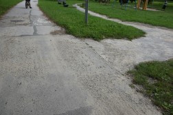 Nierówna nawierzchnia, wystająca studzienka, żwir i kamienie – tak wygląda fragment drogi dla rowerów w okolicy placu zabaw dla dzieci, nieopodal siłowni zewnętrznej. Taki stan ścieżki stwarza spore zagrożenie, szczególnie dla użytkowników rolek czy hulajnóg. Uważać muszą zwłaszcza rodzice, których dzieci wybierają Dolinę Silnicy na pierwsze lekcje jazdy.