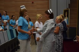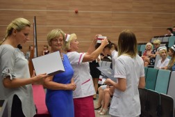 Podczas uroczystości absolwenci złożyli ślubowanie i odśpiewali hymn pielęgniarski, a na koniec wręczone zostały nagrody dla pielęgniarek i położnych, które ukończyły studia z wyróżnieniem.