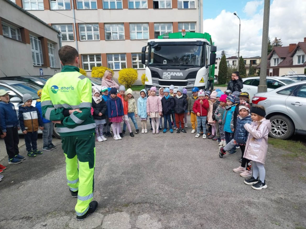 Dzieciaki miały okazję z bliska przyjrzeć się śmieciarce, a także radiowozowi strażników miejskich. Wzięły również udział w zajęciach dotyczących segregacji odpadów