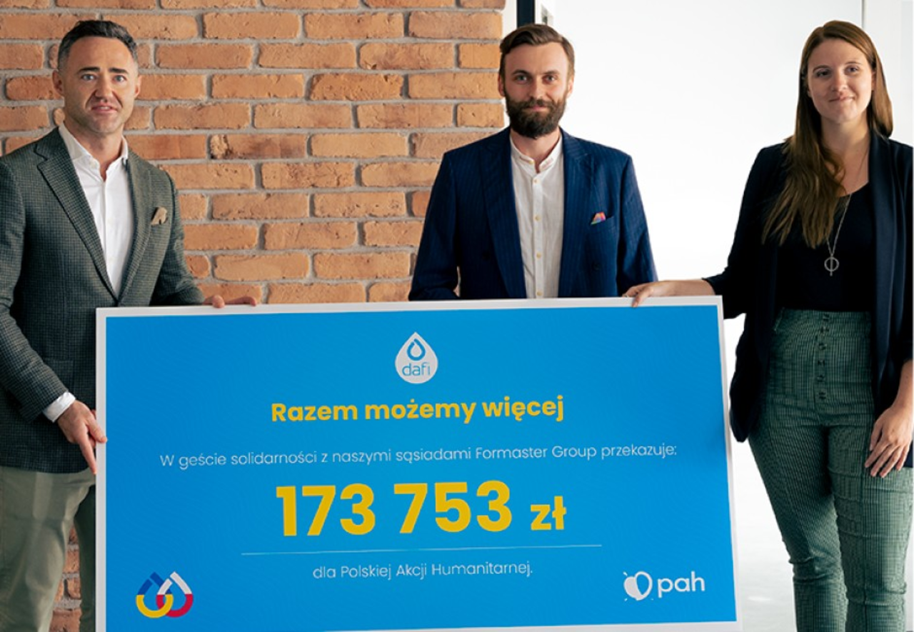 20 września w fabryce w Bilczy przekazano czek na ponad 170 tysięcy złotych od marki Dafi dla Polskiej Akcji Humanitarnej, która organizuje pomoc dla uchodźców z Ukrainy.