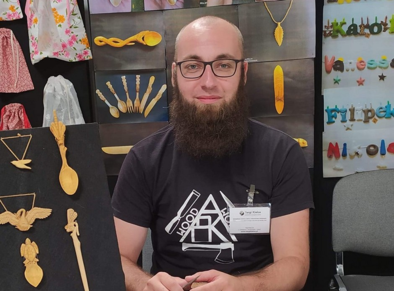 – O zrobienie pierwszej łyżki ze świętokrzyską czarownicą poprosiła mnie żona. Od tamtej pory codziennie szlifuję swój warsztat – mówi Bartłomiej Kaczmarczyk.