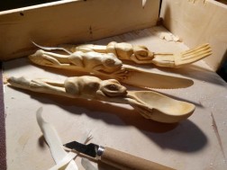 Każda ma inną wielkość i wzór. Nie ma dwóch identycznych. Jedna łyżka jest z głową łosia, na innej przysiadła jaskółka, a po kolejnej wije się bujna winorośl. Bez wątpienia, do tego artysty inspiracja przychodzi prosto z natury.