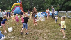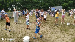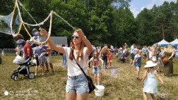 Przybierające rozmaite kształty i rozmiary bańki powstawały z 600 litrów płynu. I choć najlepiej puszczać je przy delikatnym wietrze, po deszczu, dzisiejsza pogoda nie przeszkadzała nikomu. Relaksująca zabawa na świeżym powietrzu, przy dźwiękach muzyki na żywo, przyciągnęła wielu fanów.