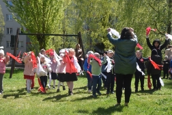 - Wiem, że flaga Polski jest biało-czerwona i jest dla nas bardzo ważna – mówi Lena. – Kolor biały oznacza czystość, a czerwony miłość – dodaje Ola. – W Dniu Flagi wywiesza się flagę – uzupełnia Franek.