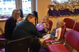 Obecna także była grupa dzieci z przedszkola, która na dziedzińcu szpitala wypuściła w niebo fioletowe baloniki.