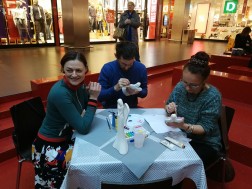 Stoliki przy których malowane są Anioły Hani zapełnione są do ostatniego miejsca. Każda figurka barwiona jest wedle własnej koncpecji, a najważniejsze jest to by pomóc potrzebującej dziewczynce. Wśród osób, które przyozdabiają anioły jest między innymi dyrektor Europejskiego Centrum Bajki imienia Koziołka Matołka w Pacanowie, Karolina Kępczyk.