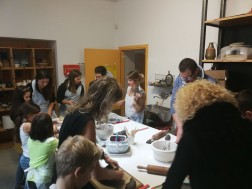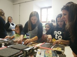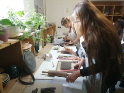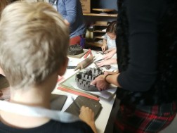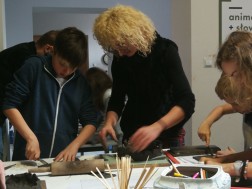 Dzisiejsze warsztaty rozpoczęły się od krótkiego wykładu historycznego prowadzonego przez historyków OMPiO. Magdalena Lang-Trela oraz Wojciech Wielgus opowiedzieli o naszych regionalnych zamkach. Dzieci i rodzice poznali między innymi historie takich budowli, jak zamek w Chęcinach, Pałac Biskupów Krakowskich, zamek w Podzamczu Piekoszowskim czy Krzyżtopór w Ujeździe. Następnie uczestnicy, w ramach warsztatów, wykonali własne donice na kształt zamku.