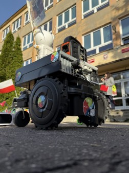 – Skonstruowaliśmy łazika, który ma obudowę popularnego robota sprzątającego, dlatego nie jeździ zbyt szybko, bo to przecież robot odkurzający, przerobiony – ale jeździ! Jest ładowany energią słoneczną. Obliczaliśmy, że wytrzyma około 10 godzin na jednym akumulatorze, więc może byśmy gdzieś nim dojechali. Najtrudniejsze w przygotowaniu łazika były momenty, w których okazywało się, że coś nie działa, np. gdy silniki nie pracowały we właściwy sposób. Przygotowywaliśmy tę maszynę przez dwa tygodnie. Udział w tego typu wydarzeniach jest rozwijający – to przede wszystkim zabawa, a przez nią uczymy się najwięcej – mówi Przemysław Kuliś, uczeń trzeciej klasy kieleckiego „Elektryka”.