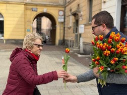 Już jutro, 8 marca, Dzień Kobiet. Z tej okazji przedstawiciele męskiej części naszej redakcji rozdawali na ulicy Sienkiewicza kwiaty napotkanym paniom. W sumie rozdaliśmy kilkadziesiąt pięknych tulipanów.
