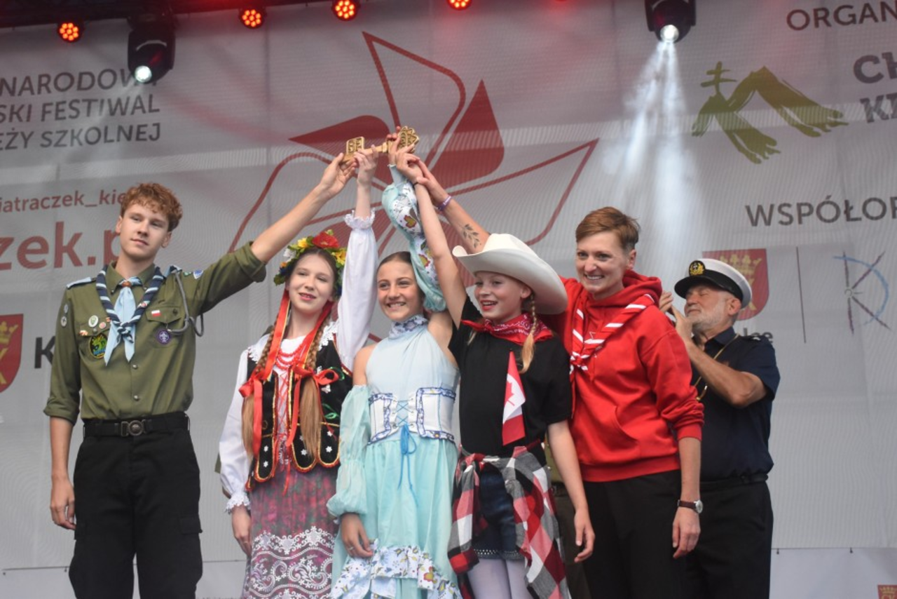 Międzynarodowy Harcerski Festiwal Kultury Młodzieży Szkolnej oficjalnie przejął władzę nad Kielcami. Było głośno, kolorowo i radośnie, gdy dziś (12 lipca) na Rynek wmaszerował barwny, rozśpiewany korowód. Prezydent Agata Wojda wręczyła uczestnikom klucze do bram miasta.