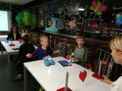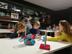 Dzieci, które wzięły udział w warsztatach zatytułowanych „Ramię w ramię z robotem” zaprogramowały małego Dota w taki sposób, by ten umiał mrugać okiem, uśmiechać się bądź wykonywać obie te czynności na raz. - Takie zadania być może brzmią skomplikowanie, jednak - jak się okazuje - nie są w cale takie trudne. Te roboty są dość proste w obsłudze, wystarczy do tego aplikacja zainstalowana na tablecie lub telefonie. Składa się ona z bloczków kodu, które są odpowiednio przygotowane, a my składamy je jak klocki lego, po czym robot odpowiednio odczyta sobie polecenia i zareaguje – wyjaśniał