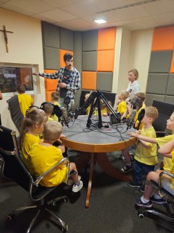Przedszkolaki z ogromnym zainteresowaniem zwiedzały redakcję, newsroom oraz studio nagraniowe, gdzie mogły podejrzeć z bliska, jak wygląda codzienna praca dziennikarzy i prezenterów radiowych.