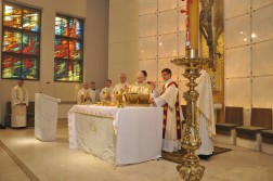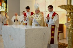 Uroczystej konsekracji dokonał ks. biskup Kazimierz Ryczan. – Jan Paweł II został z nami modlitwą – mówił ks. biskup. Podkreślał również, że ołtarz jest centralnym miejscem kościoła, gdzie składana jest Najświętsza Ofiara. – Kto nie docenia święta i świętowania, ten nie docenia Boga – mówił ks. biskup i pytał: - Dlaczego w Polsce rozpada się aż 60 procent małżeństw? Przestali świętować i nawiedzać świątynię. Dlaczego tyle procesów sądowych i nienawiści? Przestali świętować niedzielę. Budujcie w sercu drogę do świątyni. Życie będzie piękniejsze, rodzina piękniejsza i Polska będzie piękniejsza.
