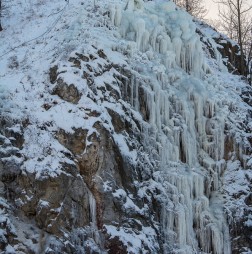 Przypomnijmy, że lodospad to kilkaset ton wylanej wody, która po zamarznięciu tworzy imponujące warstwy przypominające lodową górę. Lodospad powstaje dzięki członkom Świętokrzyskiego Klubu Alpinistycznego oraz pracownikom Geoparku. W piątek, 6 grudnia, w uroczystość Trzech Króli prezentował się tak jak na zdjęciach poniżej.