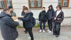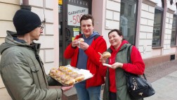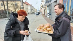Takie miłe spotkania lubimy najbardziej. Przechodzący ulicą Sienkiewicza mogli otrzymać od nas pączka za… jeden uśmiech.
